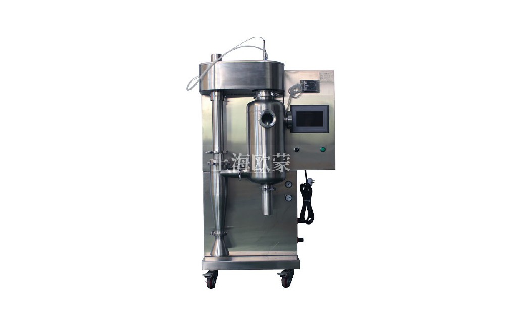 小型噴霧干燥機是一種可以同時完成干燥和造粒的裝置。按工藝要求可以調(diào)節(jié)料液泵的壓力、流量、噴孔的大小,得到所需的按一定大小比例的球形顆粒。