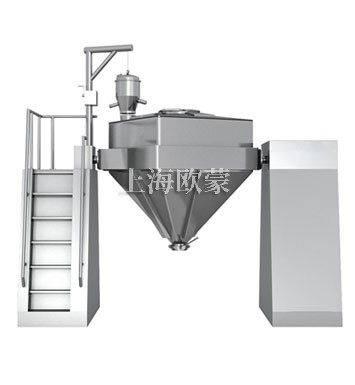 將物料裝入方錐形密閉混合桶內(nèi),料斗對稱的軸線與回轉(zhuǎn)軸軸線成一夾角,不同組分物料在密閉的料斗中進(jìn)行三維空間運(yùn)動,產(chǎn)生強(qiáng)烈翻轉(zhuǎn)和擴(kuò)散收縮作用,達(dá)到較佳的混合效果。